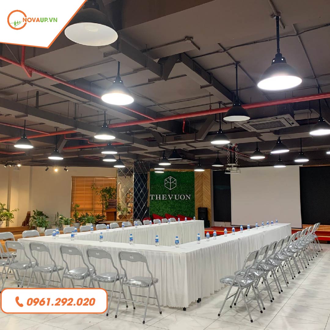 NovaUp cung cấp dịch vụ tại hơn 10 địa điểm ở trung tâm thành phố Hà Nội để phục vụ quý khách hàng và cung cấp nhiều loại phòng, diện tích, sức chứa khác nhau, đầy đủ tiện nghi phù hợp cho đa dạng loại hình tổ chức: Hội thảo, đào tạo, họp, offline, CLB, …