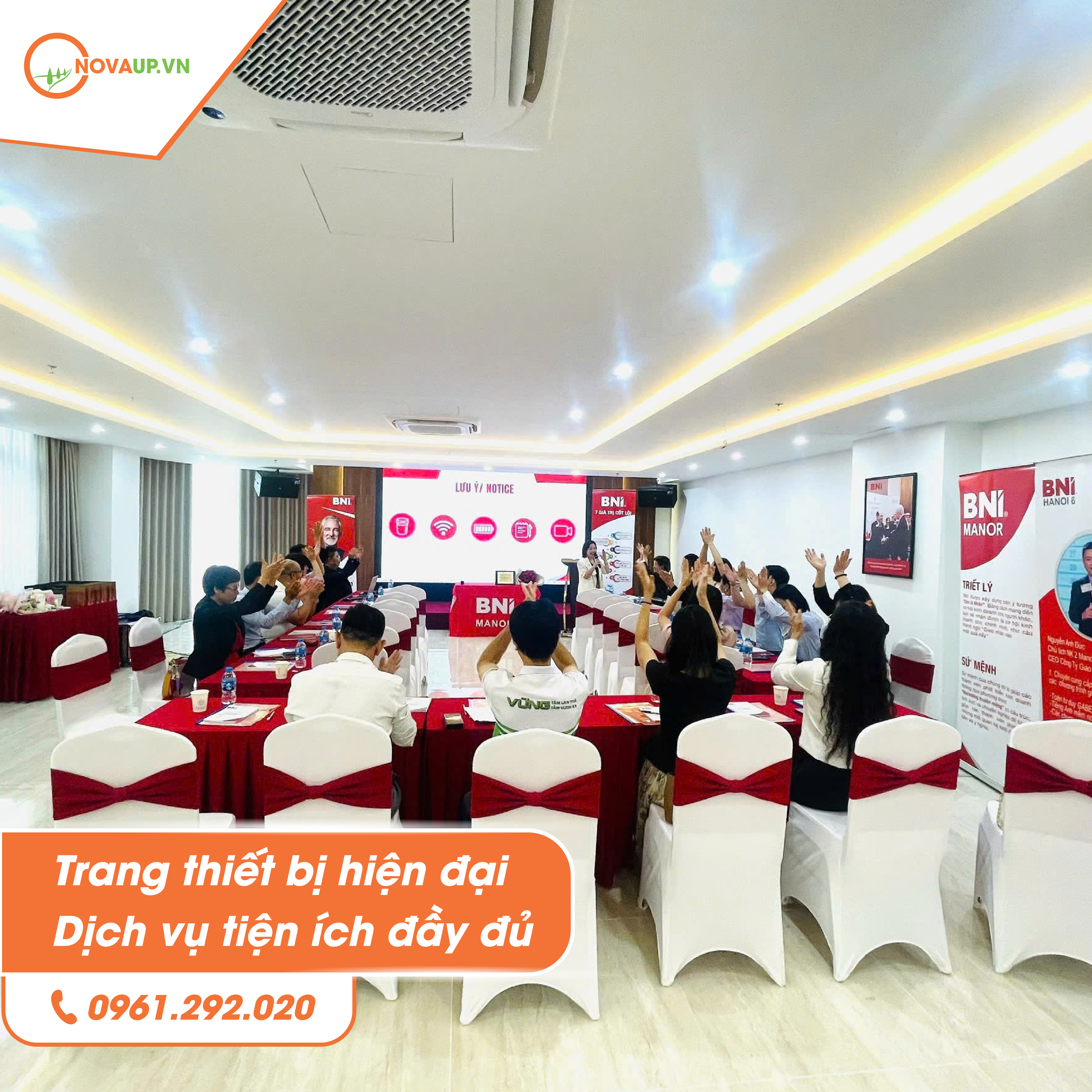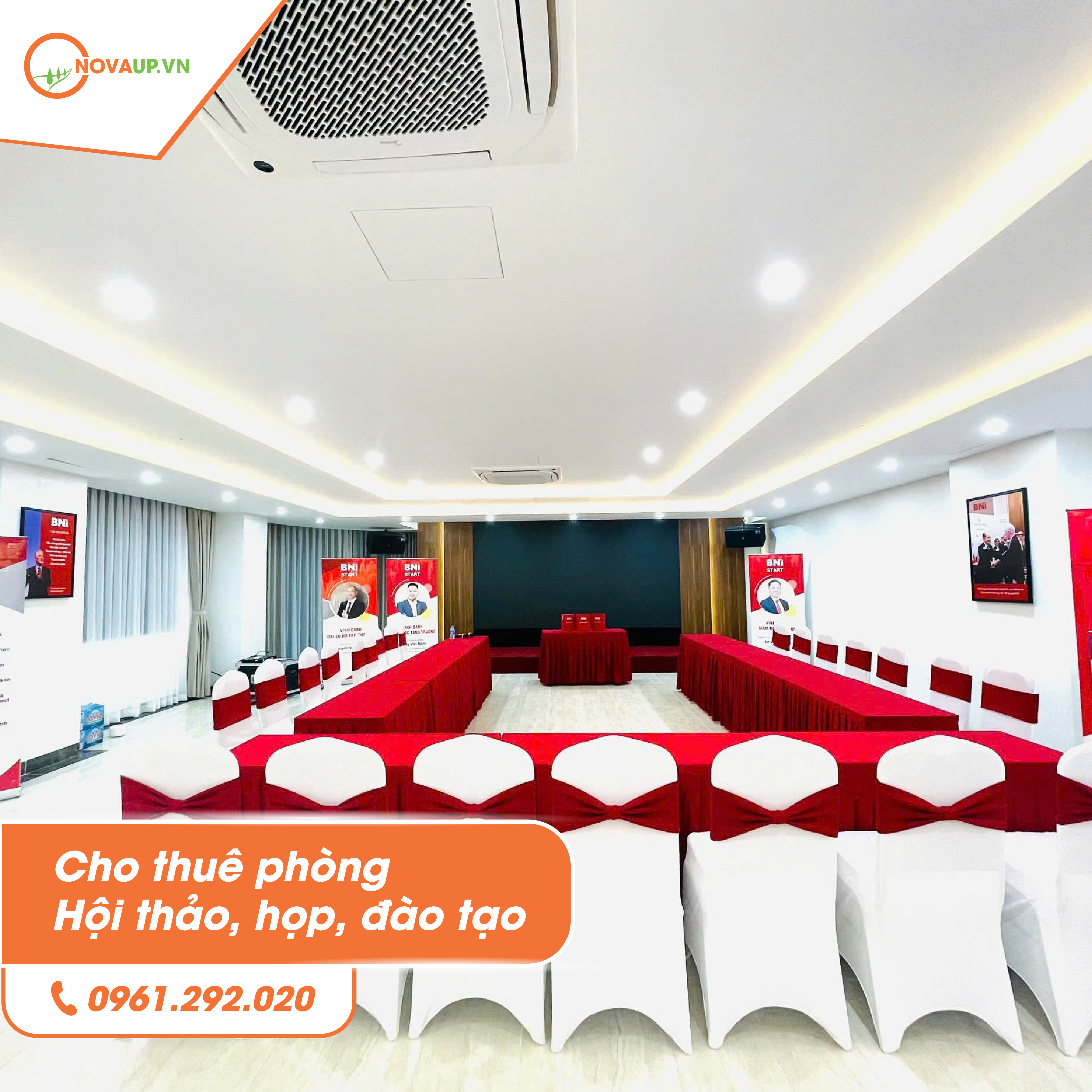 NovaUp - đơn vị uy tín số 1 chuyên cung cấp hệ thống phòng đào tạo, hội thảo, sự kiện hiện đại, quy mô linh hoạt từ 20–1.500 chỗ, có địa điểm tại tất cả các quận của Hà Nội, TP. Hồ Chí Minh. Đầy đủ trang thiết bị: màn LED, máy chiếu, micro, bút slide, cáp kết nối, có bãi gửi xe, nước uống ở khu vực chung và wifi miễn phí. Setup theo yêu cầu, nhân viên nhiệt tình, chu đáo. Chính sách ưu đãi đặc biệt cho khách thuê lâu dài, thuê hợp đồng nhiều ngày.